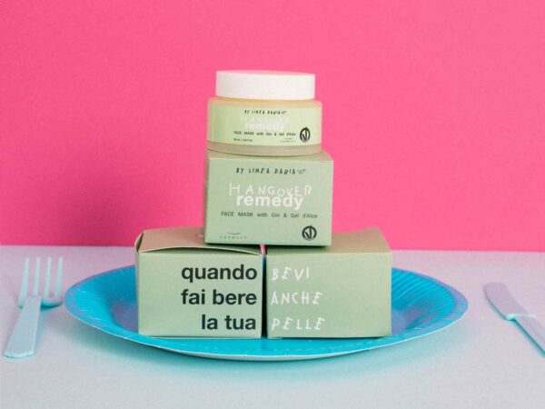 Hangover remedy: il rimedio skincare da adottare in caso di hangover. Hangover remedy è una maschera viso dedicata a chi ama alzare un po’ il gomito, una coccola per farti sentire meno in colpa il giorno dopo. Applicala su viso e collo, attendi 15 minuti e risciacqua con acqua tiepida. Nella formulazione sono presenti Gin e Gel D’aloe, che purificano la pelle e l’anima.