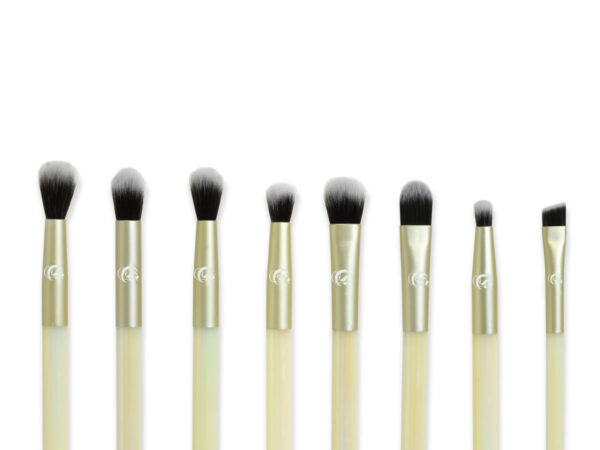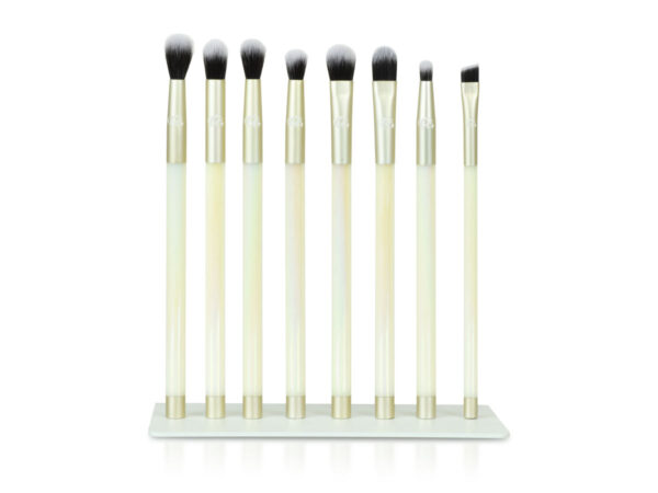 Il set pennelli occhi di Erikioba vuole riassumere le esigenze quotidiane, ma anche professionali con 8 pennelli occhi dal fusto madreperla, funzionali ed ergonomici. Le setole sono bicolor per non inficiare l’aspetto dei pennelli al primo utilizzo, pur mantenendo la funzione di poter vedere il colore che si è prelevato. La banda magnetica è utile per tenere verticali gli strumenti, così da poterli utilizzare comodamente e igienicamente.